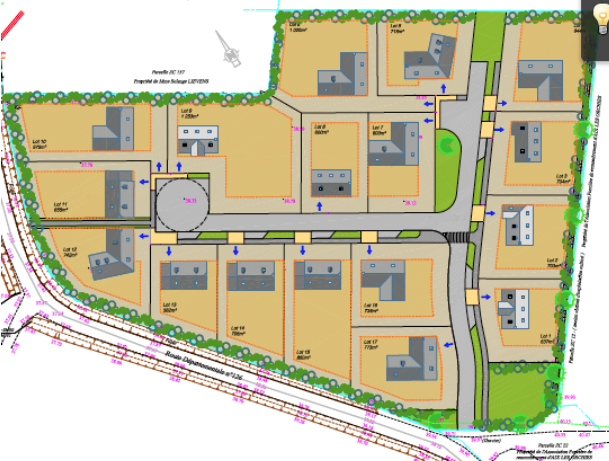 Ci après le plan de composition du lotissement d’Aix en Pévèle où vous pouvez observer de larges façades, des espaces verts et une implantation étudiée pour limiter les vis à vis.