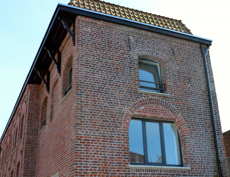 Nous avons préservé le cachet de cette bâtisse en conservant notamment la façade en brique, les ouvertures...